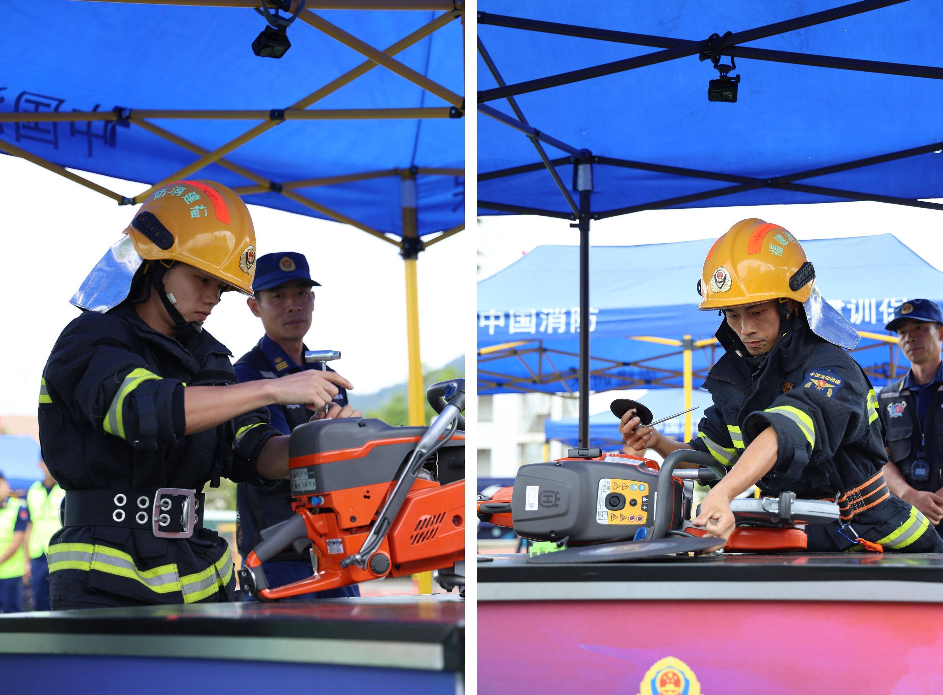 比赛首日,在装备维护员竞赛项目中,厦门市消防救援支队参赛消防员王振国、彭春文凭借出色表现,包揽无齿锯故障排除操冠亚军。