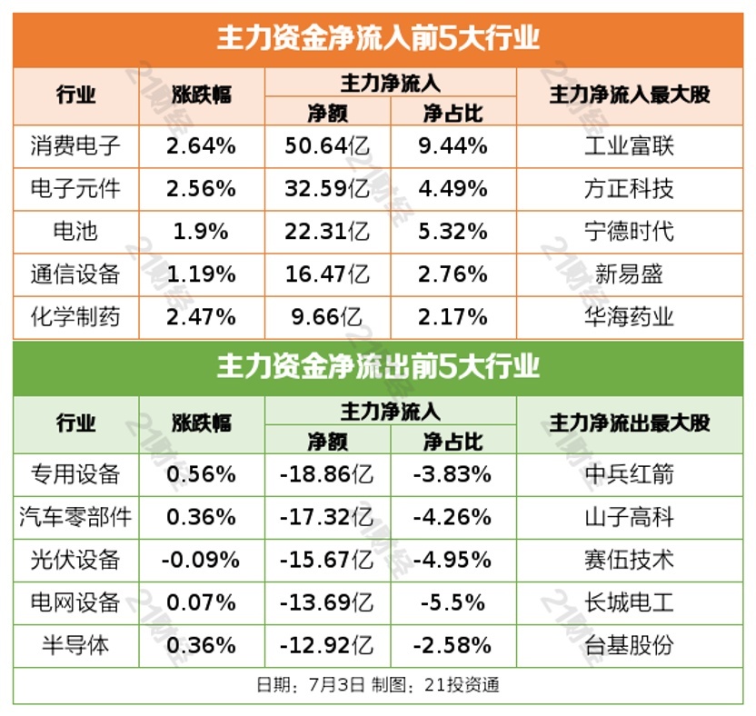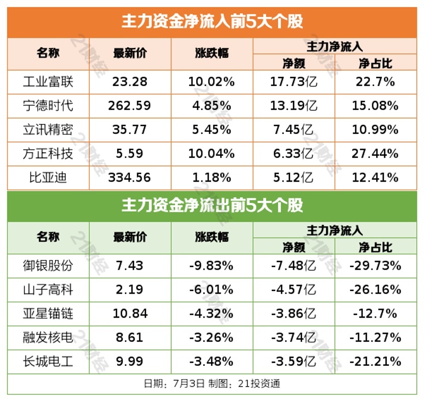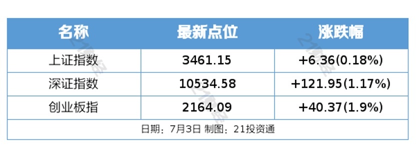 7月3日,市场全天震荡反弹,创业板指领涨,宁德时代涨近5%。沪深两市全天成交额1.31万亿元,较上个交易日缩量672亿元。 盘面上,市场热点较为杂乱,个股涨多跌少,全市场超3200只个股上涨。